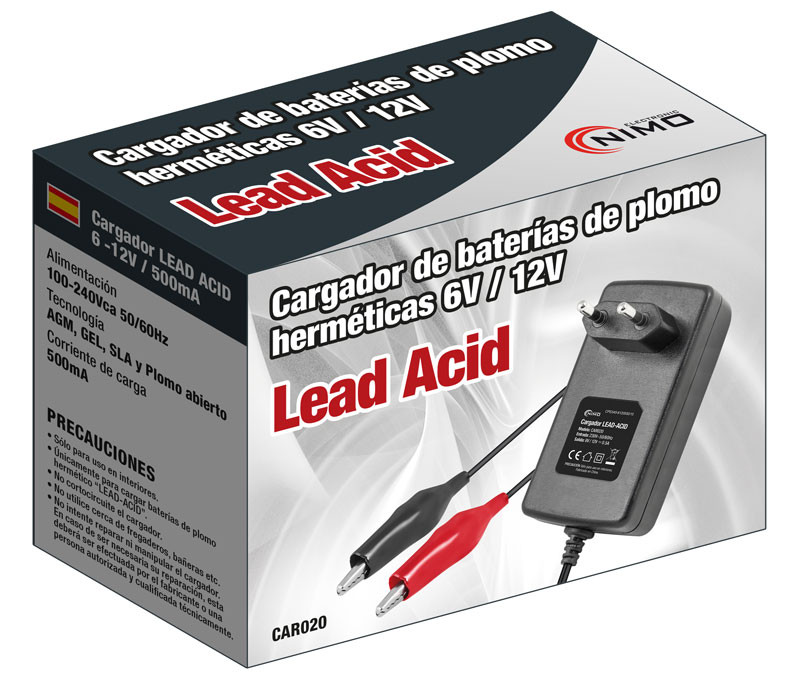 CARGADOR BATERÍAS DE PLOMO 6V Y 12V/0,5A. Mod. CAR020