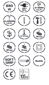 Taladro percusión 850W portabrocas 13mm. Mod. VIBE850